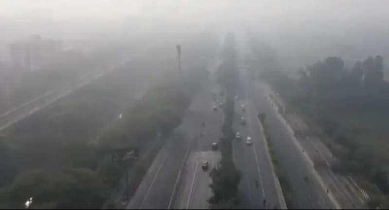 Videos showed a thick layer of toxic air at Delhi’s Akshardham, where the Air Quality Index (AQI) stood at 493.