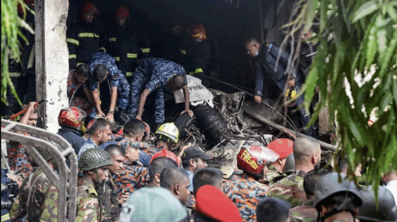 Firefighters sprayed water on the mangled remains of the plane, which appeared to have rammed into the side of a building, damaging iron grills and creating a gaping hole in the structure, Reuters reported. Dr Md Sayedur Rahman, Special Assistant Professor for Health to the Chief Advisor, said 48 people were in critical condition.
