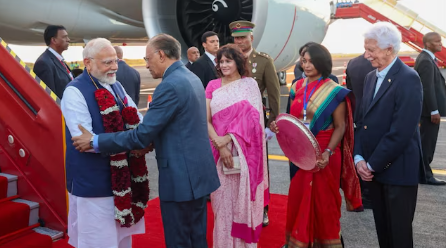 Despite the early hour, he was welcomed by the country’s top dignitaries, with Mauritius Prime Minister Navin Ramgoolam greeting him with a garland. He was joined by the Deputy Prime Minister, Chief Justice of Mauritius, Speaker of the National Assembly, Leader of the Opposition, Foreign Minister, Cabinet Secretary, Chairperson of the Grand Port District Council, and several other high-ranking officials.