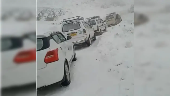 Jammu: Over 200 people are stuck near Sinthan Top after fresh snowfall blocked motor vehicle moments on Kishtwar-Srinagar National Highway. Fifty vehiclesa are reportedly stuck, sources said.