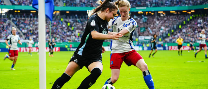 Never before have this many supporters attended a women’s football club match in Germany. A record-breaking 57,000 fans watched visitors Bremen beat Hamburg to seal a ticket to the women’s German Cup final.