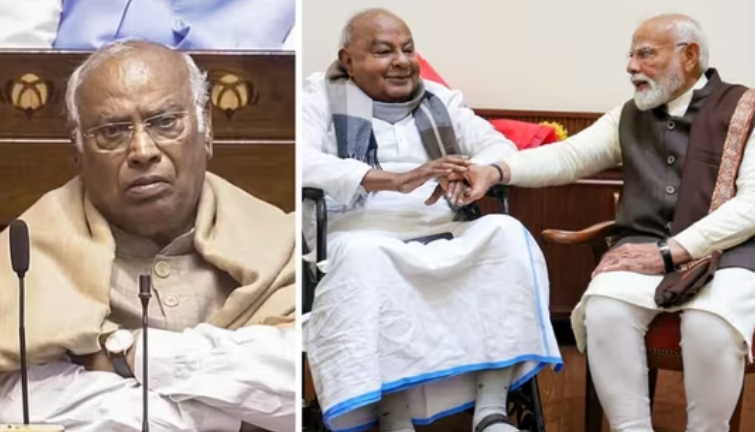 Congress president Kharge on Wednesday said in Rajya Sabha sarcastically that former PM and JD(S) leader HD Deve Gowda “loved Congress but married Modi”.