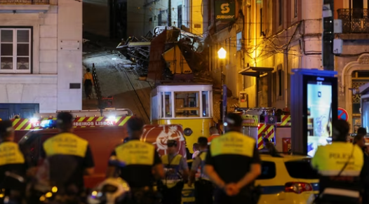 Footage from the site showed the destroyed yellow tram-like funicular, which carries people up and down a steep hillside in the Portuguese capital. Emergency workers were pulling people out of the wreckage.