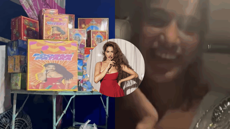 As Diwali festival 2025 has begun and everyone is flooding to buy their favourite firecrackers, one of the close-friends of actress Poonam Pandey spotted something unusual yet recognizable, when he gave it a closer look, he found out that its actually Poonam Pandey making her debut on the Patakha posters. He rushed to FaceTime the actress, and her reaction to it is a treat to watch.