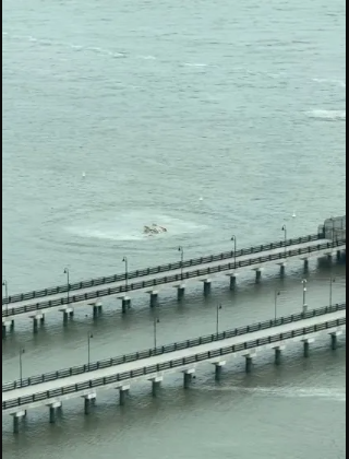Terrifying videos show the chopper completely upside down and bubbling underneath the 50-degree water’s surface after the wreck.
