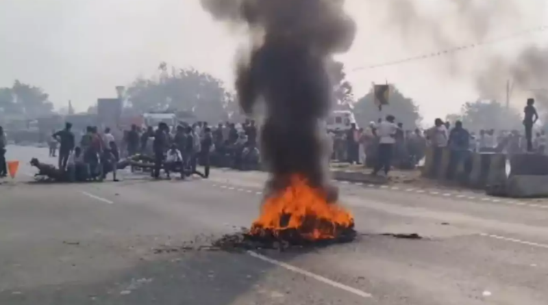 Visuals from the spot showed locals and police camping on the road as tyres burn, blocking the traffic.