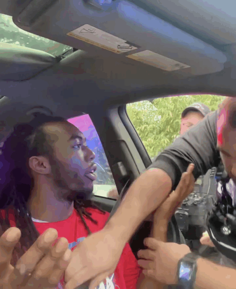 The driver is then asked to show his hands, which he does willingly as cops then open his door and rip him out of the car.
