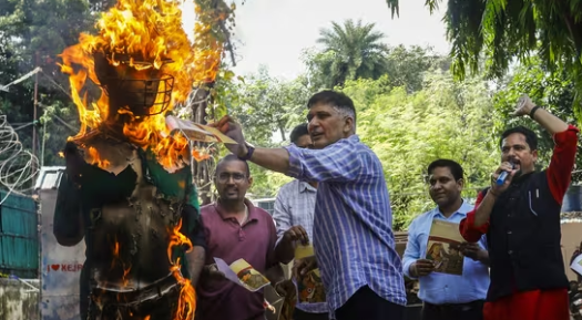 Former Delhi minister and AAP leader Saurabh Bharadwaj, along with party workers, also burnt an effigy symbolising Pakistani players in the national capital.