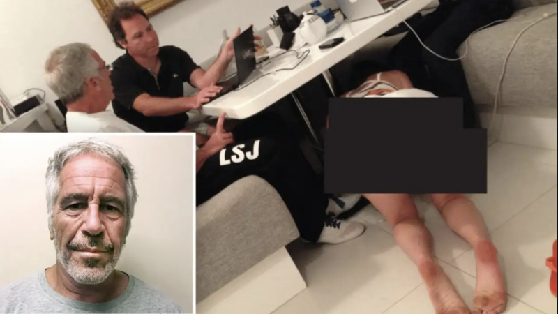 A disturbing photo earlier reportedly released by the US Department of Justice shows Jeffrey Epstein sitting at a table with two other men, acting as if everything is normal. Under the table, a woman in a white bikini is crawling on the floor with her back facing the camera. Her face is turned toward the wall, and parts of her body were blacked out before the photo was released.