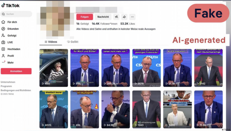 The profile that posted the video on Merz states that “All videos are satire and do not contain any real statements whatsoever.” Accounts protect themselves in this way, as social media platforms like TikTok allow for AI content as freedom of expression.