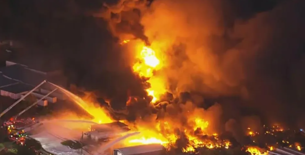 In the background of the call, a man can be heard saying to the woman, “look at it” as the plane erupted in a fiery blaze and collided with two businesses including a petroleum recycling plant.
