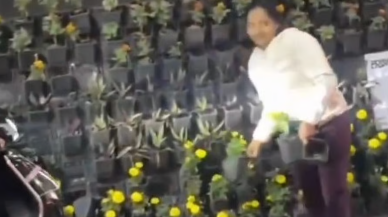 Several videos on social media showed people carrying the flower pots, some loading them onto two-wheelers, while others walking away with them on foot.