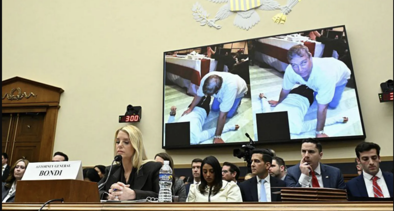 Several of Epstein’s victims were seated behind Bondi at the hearing, and lawmakers frequently referenced them.
