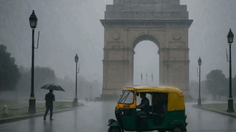 #WATCH | Delhi | Heavy rain accompanied by strong winds lashes national capital, bringing respite from heat.