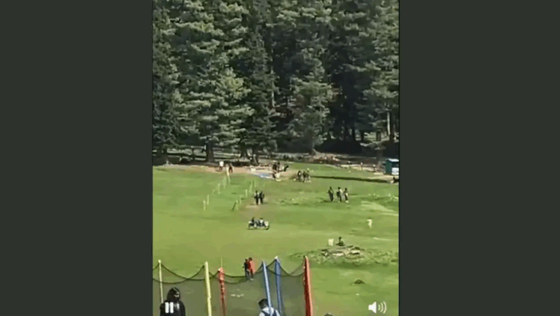 A chilling video has surfaced showing the initial moments of the Pahalgam terror attack. The video shows a terrorist shooting dead a tourist under a tree, as other tourists take a few seconds to realise the terror unfolding. The video begins with a few children playing on a trampoline and tourists relaxing nearby, but within seconds of gunfire, panic sets in as people scramble for safety.