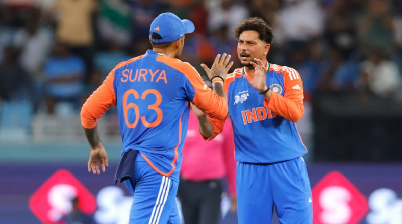 Coming in to bowl after the powerplay, Kuldeep took three wickets in the ninth over of the UAE innings, triggering their sudden collapse. In that over, UAE went from 48/2 to 50/5.