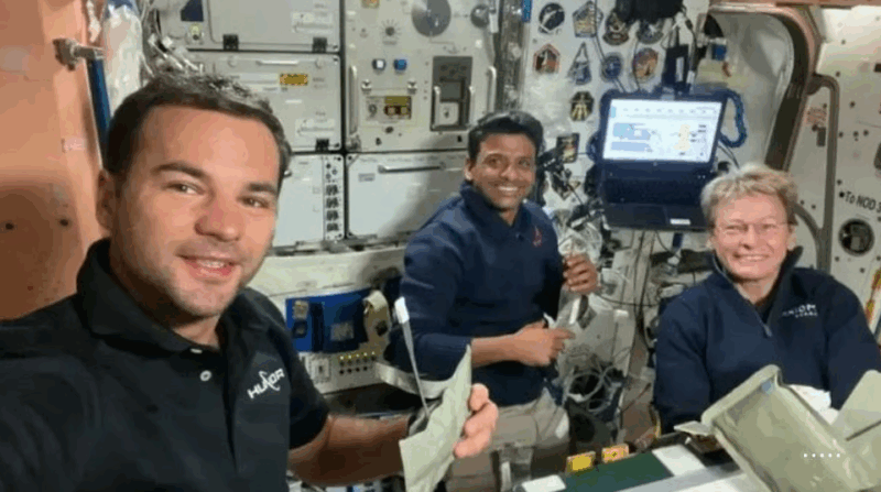 During the interaction, Subhanshu addressed a range of questions about life in space, demonstrating zero-gravity effects by playing with a floating ball. When asked about sleep in space, he explained that astronauts have to secure themselves with straps while sleeping to avoid floating around due to the lack of gravity. Shukla emphasized the importance of daily physical exercise to counter muscle loss in microgravity. “I exercise daily and use a specially designed cycle without a seat, where we pedal while being strapped in,” he said.