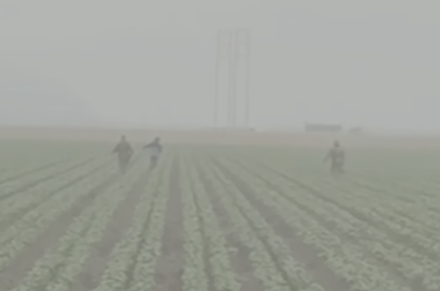 Footage uploaded to Instagram from a produce farm in the city of Oxnard, about 70 miles northwest from the riots in Los Angeles, shows the moment ICE agents target a man working in the misty fields Tuesday morning.