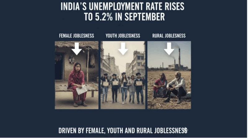 India’s unemployment rate edged up to 5.2% in September from 5.1% in August, with rural areas witnessing a sharper increase than urban centers, according to the latest Periodic Labour Force Survey (PLFS) data released by the Ministry of Statistics and Programme Implementation (MoSPI), said a report by Economic Times.
