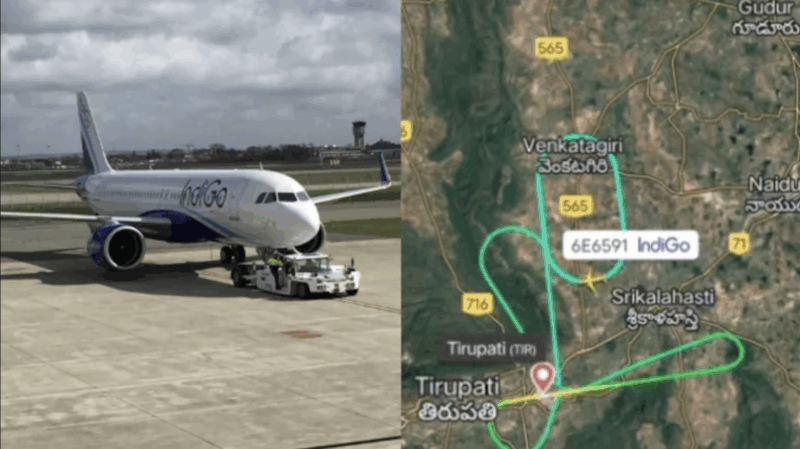 A flight path on Flightradar24 showed that the plane, 6E 6591, reached the Venkatagiri town in Tirupati before taking a U-turn. It then circled in the air for about 40 minutes and returned to Tirupati Airport.
