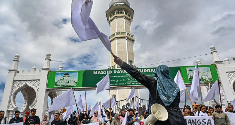 Last Thursday, dozens of protesters rallied in Aceh’s capital, Banda Aceh, waving white flags and demanding that the central government opens the door to foreign aid.