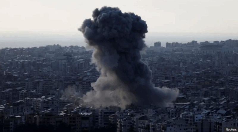 Live footage streamed by Reuters showed a giant plume of smoke billowing from the targeted building an hour after the Israeli army issued an evacuation order to residents of the Hadath neighbourhood.