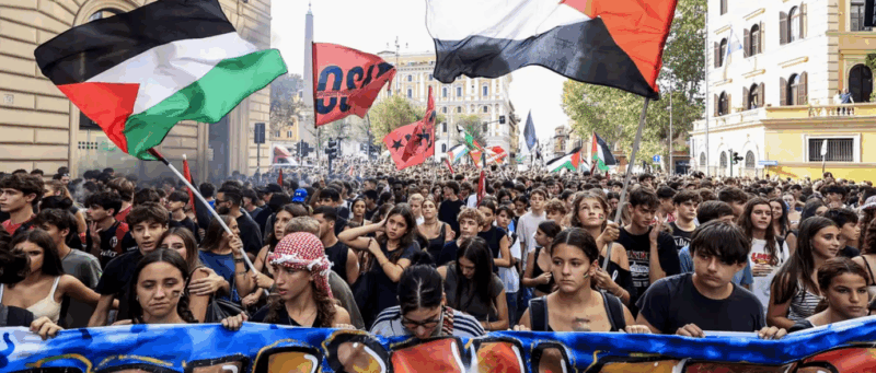 Source : https://www.dw.com/en/italy-thousands-join-pro-palestinian-protests-strikes/a-74100712
