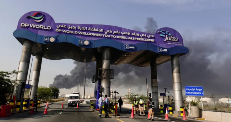 On Saturday, officials said debris from an “aerial interception” caused a fire in a berth at the port, which is the world’s ninth busiest.
