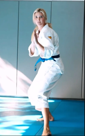 In the clip, President Trump’s daughter wore a white robe and a blue belt, which means she has reached a significant level in her teachings, as it typically requires a minimum of two years of consistent training.