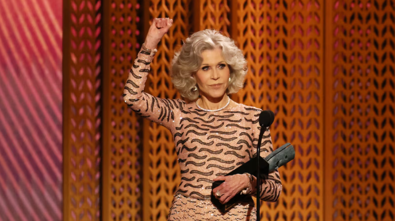 Accepting her trophy, Fonda joked about her longevity. “Probably in my 90s I’ll be doing my own stunts in action movies,” she said.