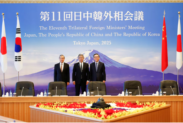 The three agreed to accelerate preparations for a trilateral summit in Japan that would also include talks on how Tokyo, Beijing and Seoul can tackle declining birthrates and aging populations, Iwaya said in a joint announcement after the meeting.