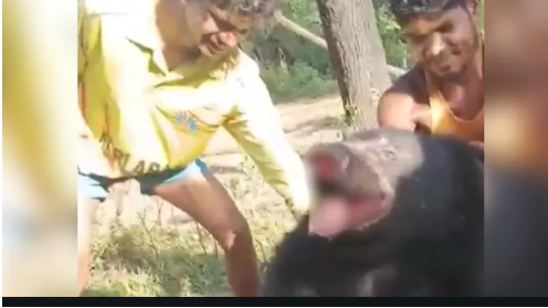 The video showed the bear writhing in pain with its legs twisted and blood coming out from its mouth. Some men were seen hitting the animal with sticks. They also pulled out its nails.