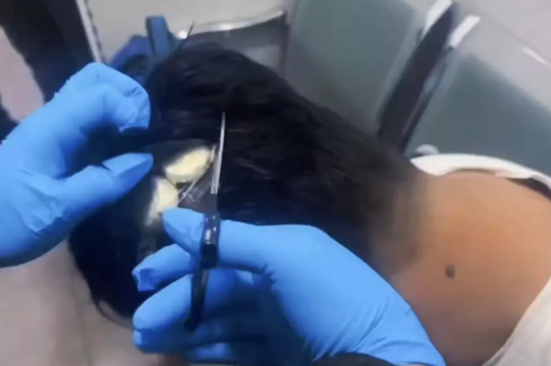 Video footage of the arrest showed officers cutting off the toupee from the man’s head, with several small packages of cocaine seen attached to the inside of the wig.