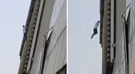 A purported video of the incident showed him dangling from the railing before jumping and a huge crowd was gathered on the road below.