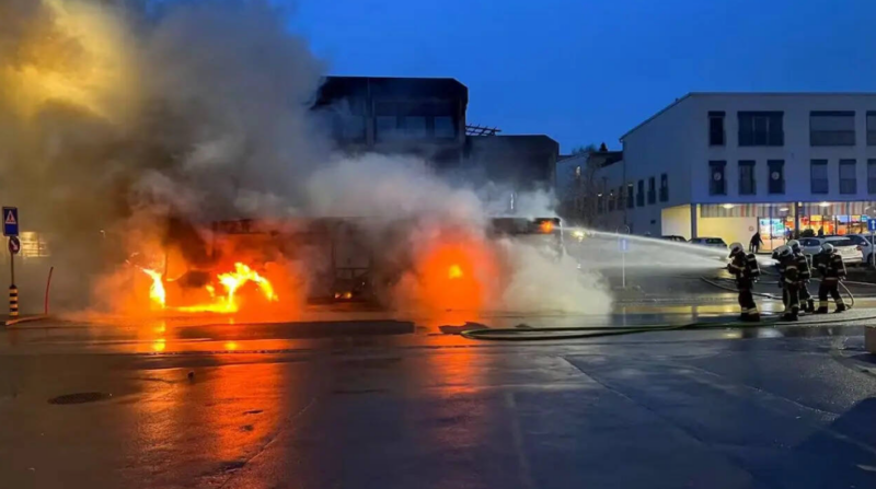 Images published by Swiss media showed flames rapidly engulfing the vehicle.
