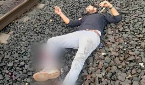 “I was clinging to the door. Then I fell here,” said Mr Nikam, who was seen lying near the train tracks.