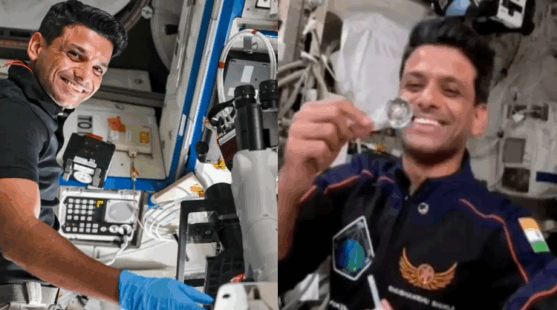 8. Water Experiment: Shubhanshu Shukla demonstrated a water-based experiment in zero gravity to show how microgravity alters the laws of everyday physics. By harnessing surface tension, he skillfully created a floating water bubble. With a smile, he joked, “I’ve become a water bender here in the station.”