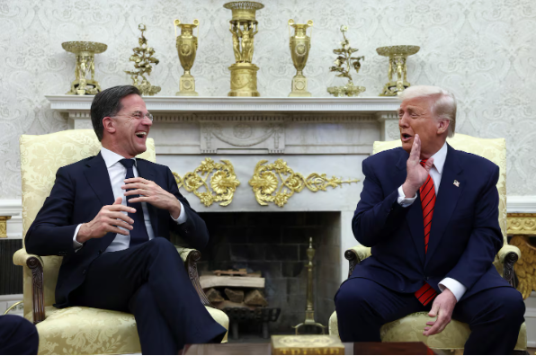 Rutte—who has been nicknamed NATO’s “Trump whisperer” for his tact in handling the mercurial politician—shared laughs with the president throughout their Oval Office meeting on Thursday. He sat silently as the president rambled about the possibility of Canada, a NATO member, becoming a U.S. state.