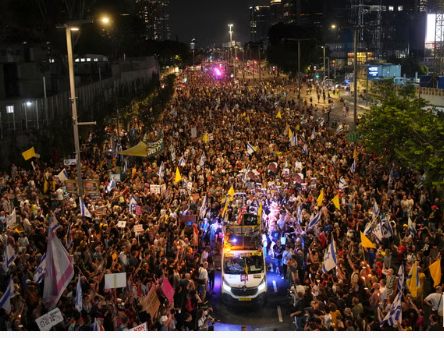 At the mass protest, some family members even called on soldiers to refuse to serve in the expanded fighting, and for the opposition to call a general strike. It follows waves of rallies across the country by Israelis calling on their government to return to the negotiating table.