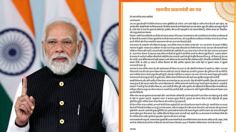 Ahead of West Bengal Assembly elections, PM Narendra Modi wrote an open letter greeting people with ‘Joy Maa Kali’ and urging them to vote wisely. He highlighted central schemes like Jan Dhan and Ujjwala Yojana, praised Bengali icons, and criticized the TMC for misrule. TMC leader Kunal Ghosh responded, noting the central government froze state funds.