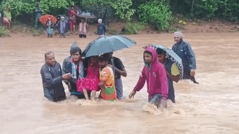 The woman went into labour at her home in Alligudem village, located in Tadvai mandal, late on Wednesday afternoon. However, the relentless rainfall had caused a forest stream to overflow, submerging the kutcha road connecting Alligudem to the nearby Bollepalli village, cutting off regular access to healthcare.
