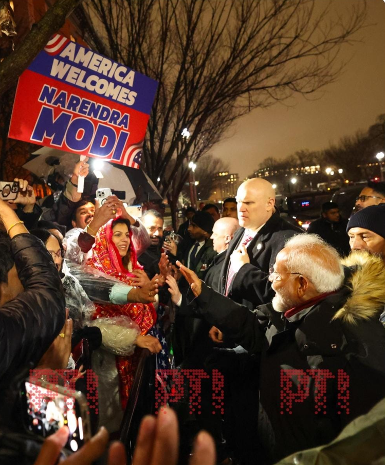 “A warm reception in the winter chill! Despite the cold weather, the Indian diaspora in Washington DC has welcomed me with a very special welcome. My gratitude to them,” Modi said on X.