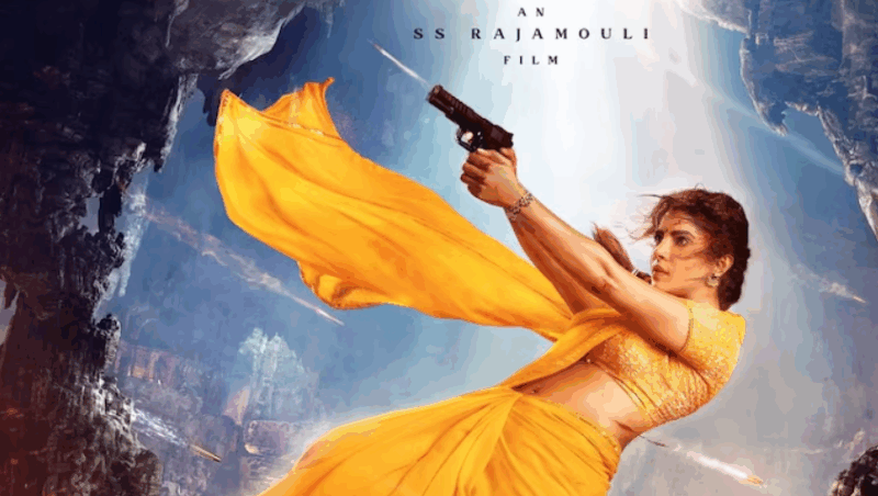 SS Rajamouli shared Priyanka Chopra’s first look as Mandakini from ‘Globe Trotter’. The actor is seen in a fierce appearance, aiming a pistol while wearing a yellow saree.