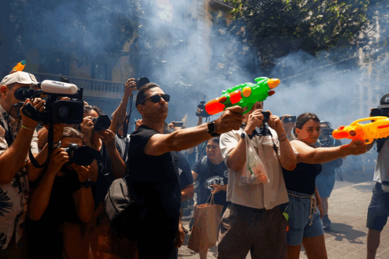 Thousands of people took to the streets of cities in southern Europe on Sunday to demonstrate against overtourism, firing water pistols at shop windows and setting off smoke in Barcelona, where the main protest took place.