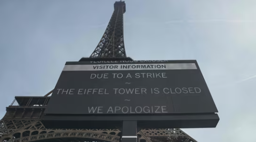 The protestors, including workers, retirees and students, marched in the French capital on Tuesday afternoon from Place d’Italie in protest against the spending cuts and demanding higher taxes on rich. The Eiffel Tower issued a statement informing visitors that it was closed due to the strikes.