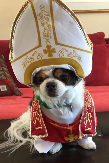 In 2015, when Francis visited the US, there was a trend for dressing up dogs to look like the Vatican chief.