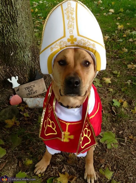 PRAISE be! This gives a whole new meaning to the term dog collar – pet pooches dressed up as the Pope.
