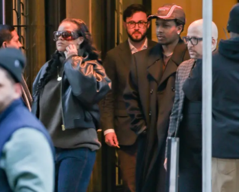 Rihanna wore cuffed jeans, snakeskin boots, a gray sweater and a leather jacket for the outing, while Rocky followed behind her in a black trenchcoat and a baseball cap.