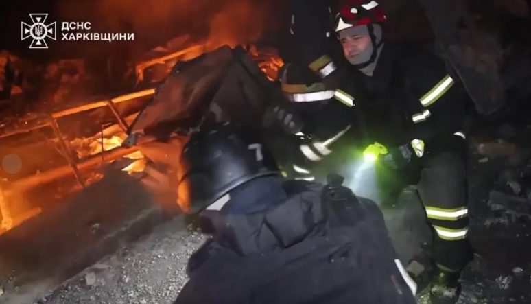 The attack in Ukraine’s Kharkiv region also wounded 10 people, local authorities said.