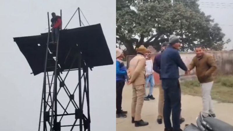 A man in Badaun climbed a 30-foot water tank demanding a second wife, claiming he had worn dirty clothes for 10 days and threatened to jump if his demand wasn’t met. Police intervened after 30 minutes and safely rescued him. His family later revealed he suffers from mental illness and is under treatment